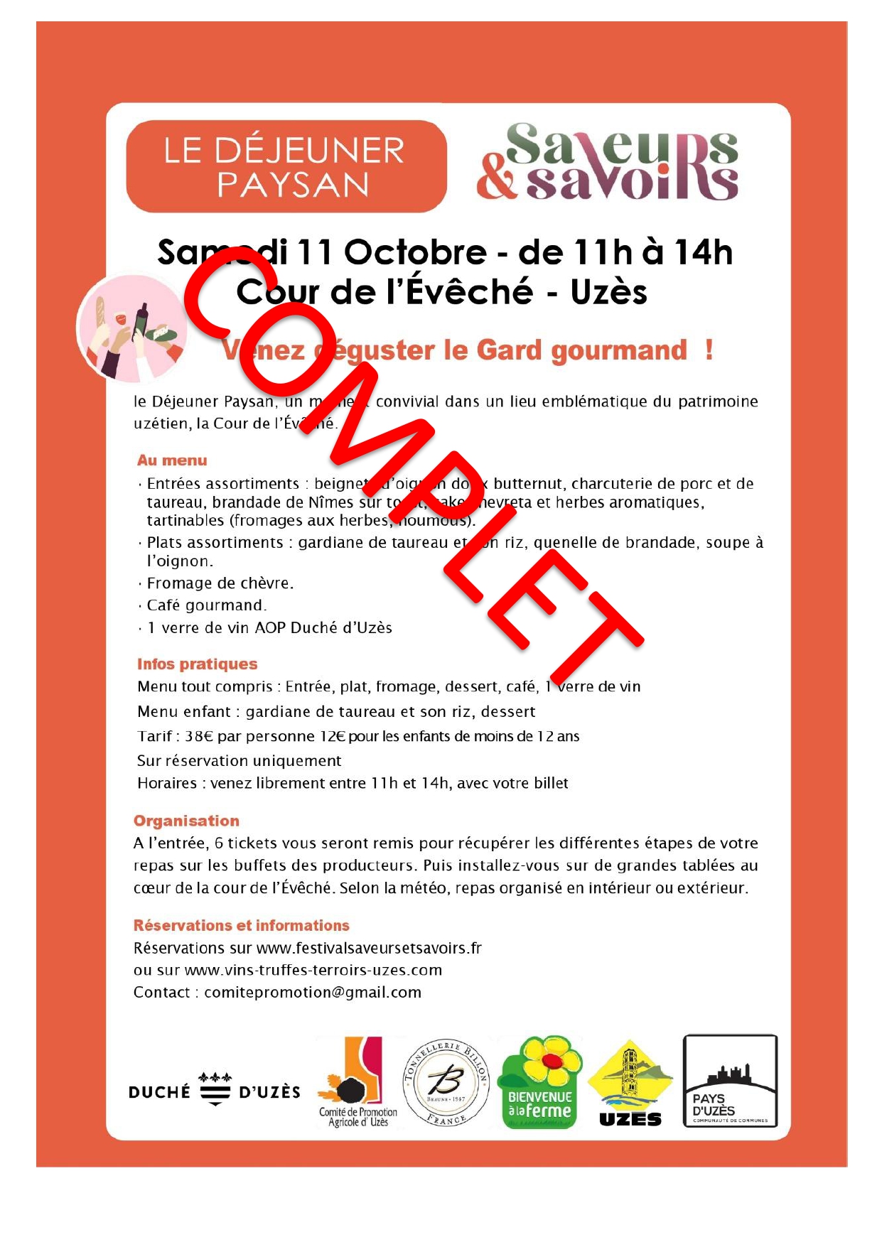 À l’occasion de la 3ᵉ édition du Festival Saveurs et Savoirs, découvrez une nouveauté gourmande : le Déjeuner Paysan, un moment convivial dans un lieu emblématique du patrimoine uzétien, la Cour de l’Évêché.